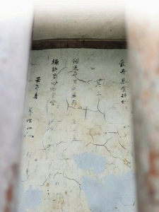 “这是关于日军轰炸成都的记载。”8月12日,当地农场负责人肖凡说,这处文字的发现完全是偶然。10余年前,在翻修这座摇摇欲坠的老祠堂时,一次下雨漏水的缘故,外墙一侧的泥浆被冲落,现出了隐约可见的黑色字迹。他们擦拭掉上面一层后,一串文字便出现了。“当时就觉得这些文字和成都大轰炸有关,我们不是专业的,就不敢再去擦拭了。”肖凡回忆说。
