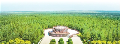 内蒙古成吉思汗国家森林公园管理中心负责人宋建强:当游客到成吉思汗国家森林公园游览,一定能看到这样的景象——整齐排列的樟子松如卫士般矗立,株距3米的标准化林带在阳光下投下浓密绿荫。谁能想到,这里以前是“黄沙遮天日”的荒漠?