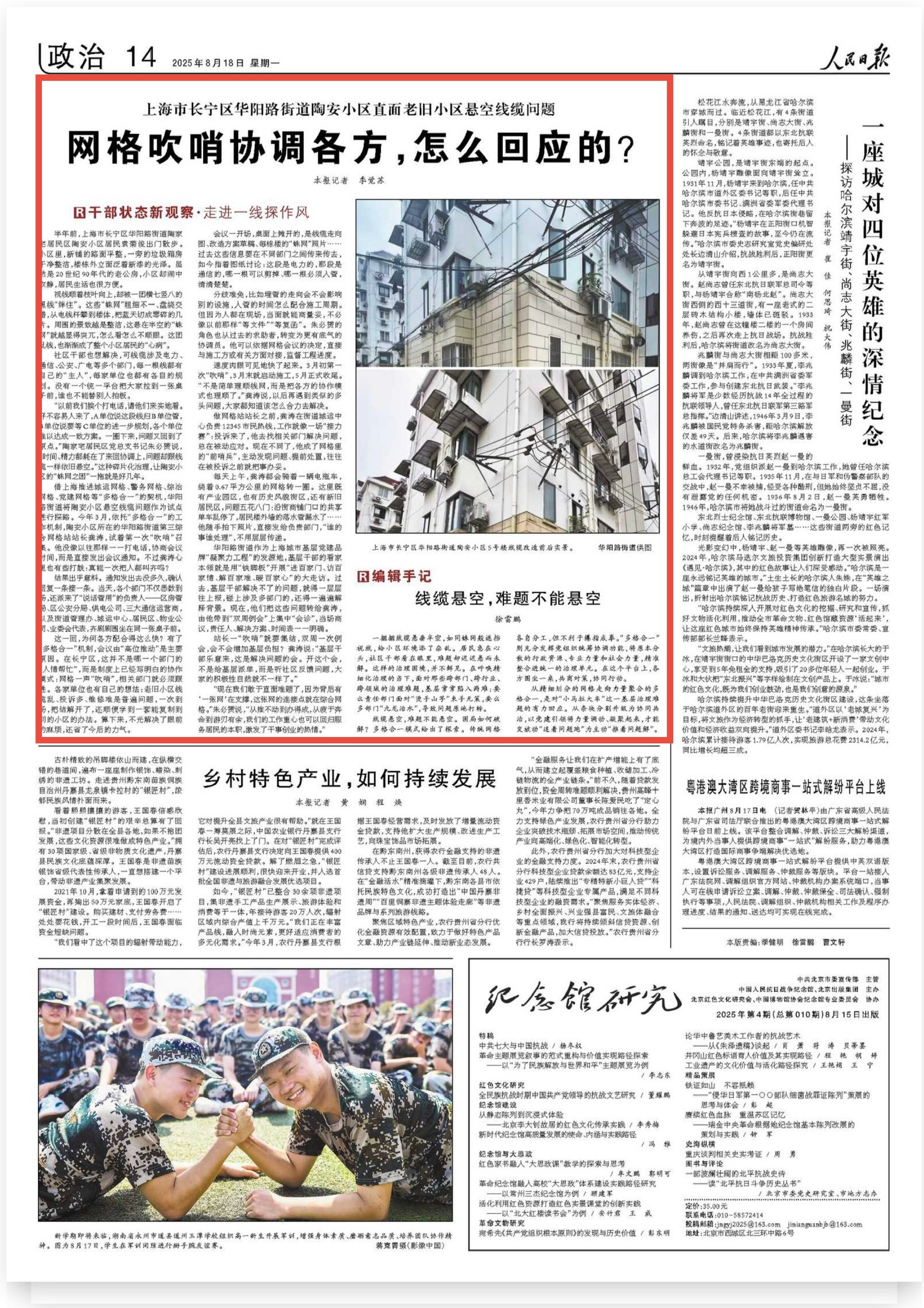 这一回,为何各方配合得这么快?有了“多格合一”机制,会议由“高位推动”是主要原因。在长宁区,这并不是哪一个部门的“人情帮忙”,而是制度上已经写明白的协作模式:网格一声“吹哨”,相关部门就必须跟进。各家单位也有自己的想法:老旧小区线缆乱、投诉多、维修难是普遍问题,一次到场,把结解开了,还顺便学到一套能复制到别的小区的办法。算下来,不光解决了眼前的麻烦,还省了今后的力气。