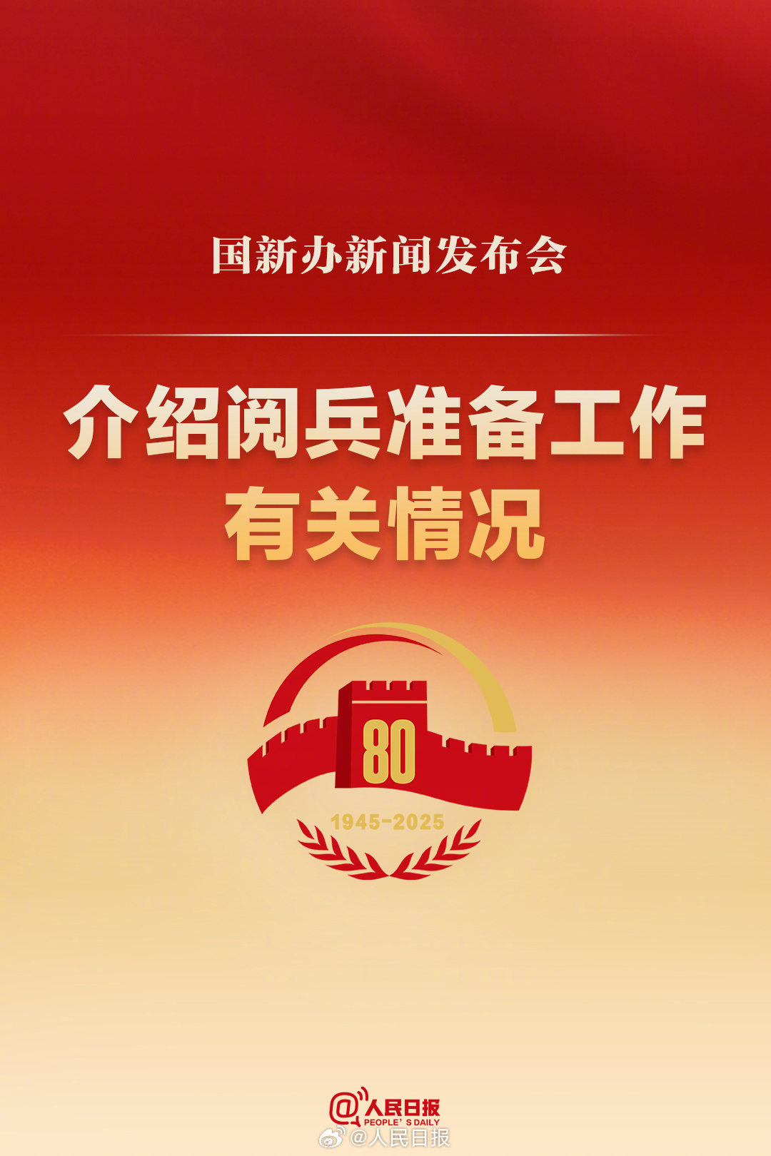 国务院新闻办公室将于2025年8月20日(星期三)上午10时举行新闻发布会,请阅兵领导小组办公室副主任、中央军委联合参谋部作战局少将副局长吴泽棵,中国人民解放军中部战区阅兵指挥机构办公室常务副主任、政治工作部少将副主任徐贵忠介绍阅兵准备工作有关情况,并答记者问。