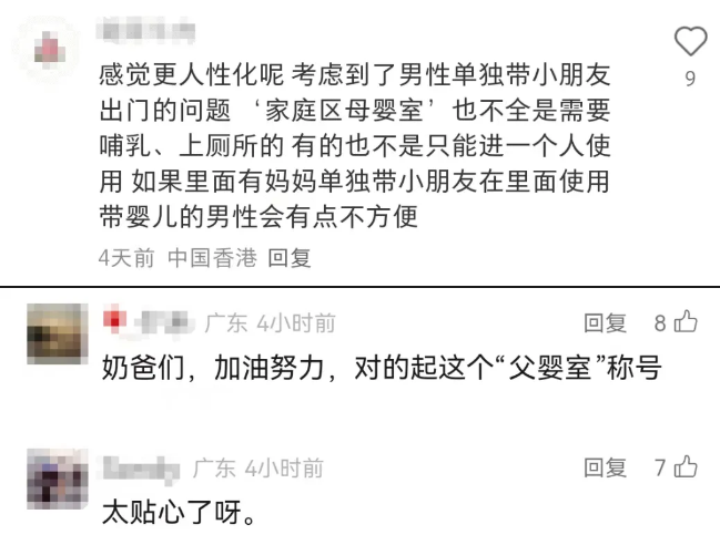 评论区有网友补充道,北京惠多港购物中心除了母婴室外,还设有专门的“父婴室”。