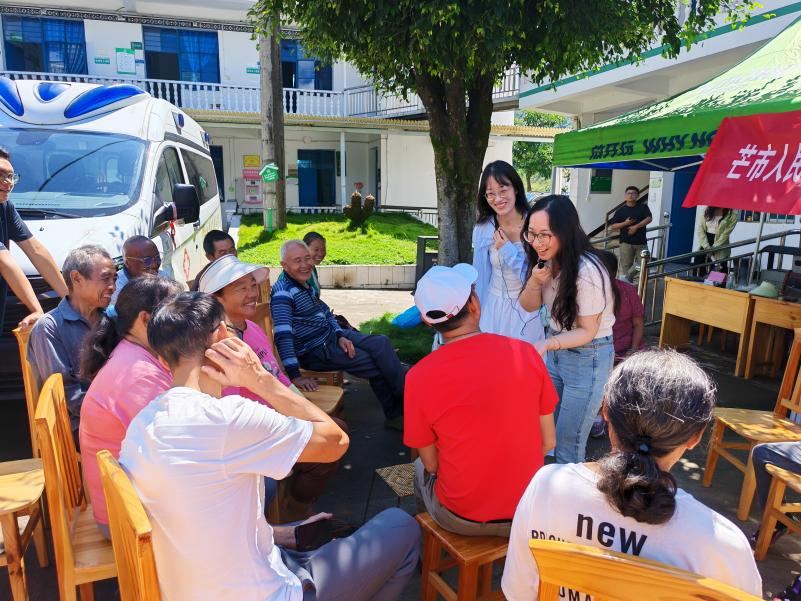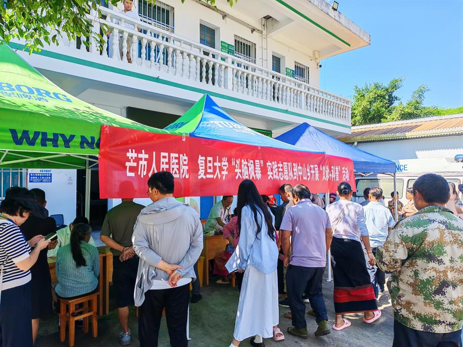 大妈口中的“上海专家”,其实是复旦大学脑科学研究院“头脑枫暴”师生科普实践志愿队的成员们。8月26日,他们跨越山河,与芒市紧密型县域医共体总院(芒市人民医院)的医疗专家团队携手,充分发挥党建引领作用,用“义诊+科普”的双轨服务,为中山乡群众送上了一场“家门口的健康盛宴”。