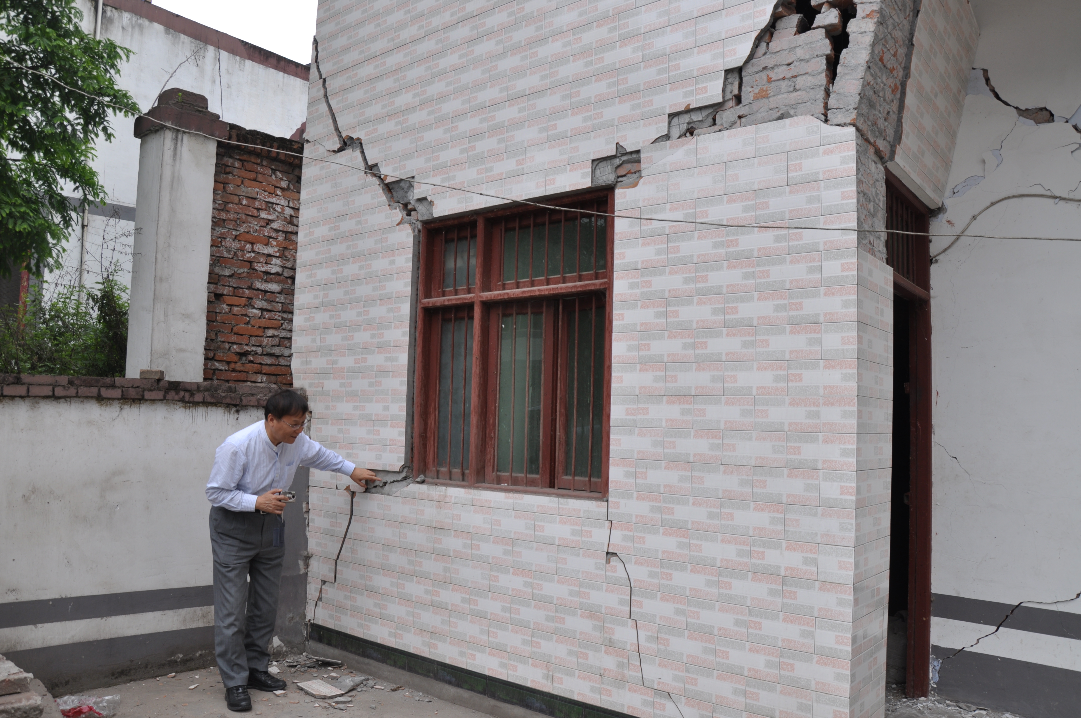 吕西林为被震裂的建筑“把脉诊断”。同济大学供图