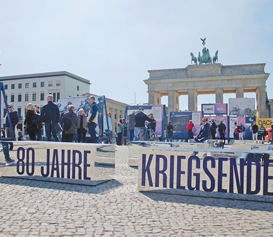 在柏林勃兰登堡门前,近日举办的一场露天特别展览以“终于和平了”为主题,展示纳粹投降前后的相关影像。展览呈现了盟军解放欧洲的历史瞬间,表达了对战争罪行的谴责、对和平的向往。