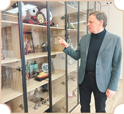 在布拉戈维申斯克国立师范大学孔子学院,俄方院长尼古拉·库哈连科介绍学院收藏的中国工艺品。 |
