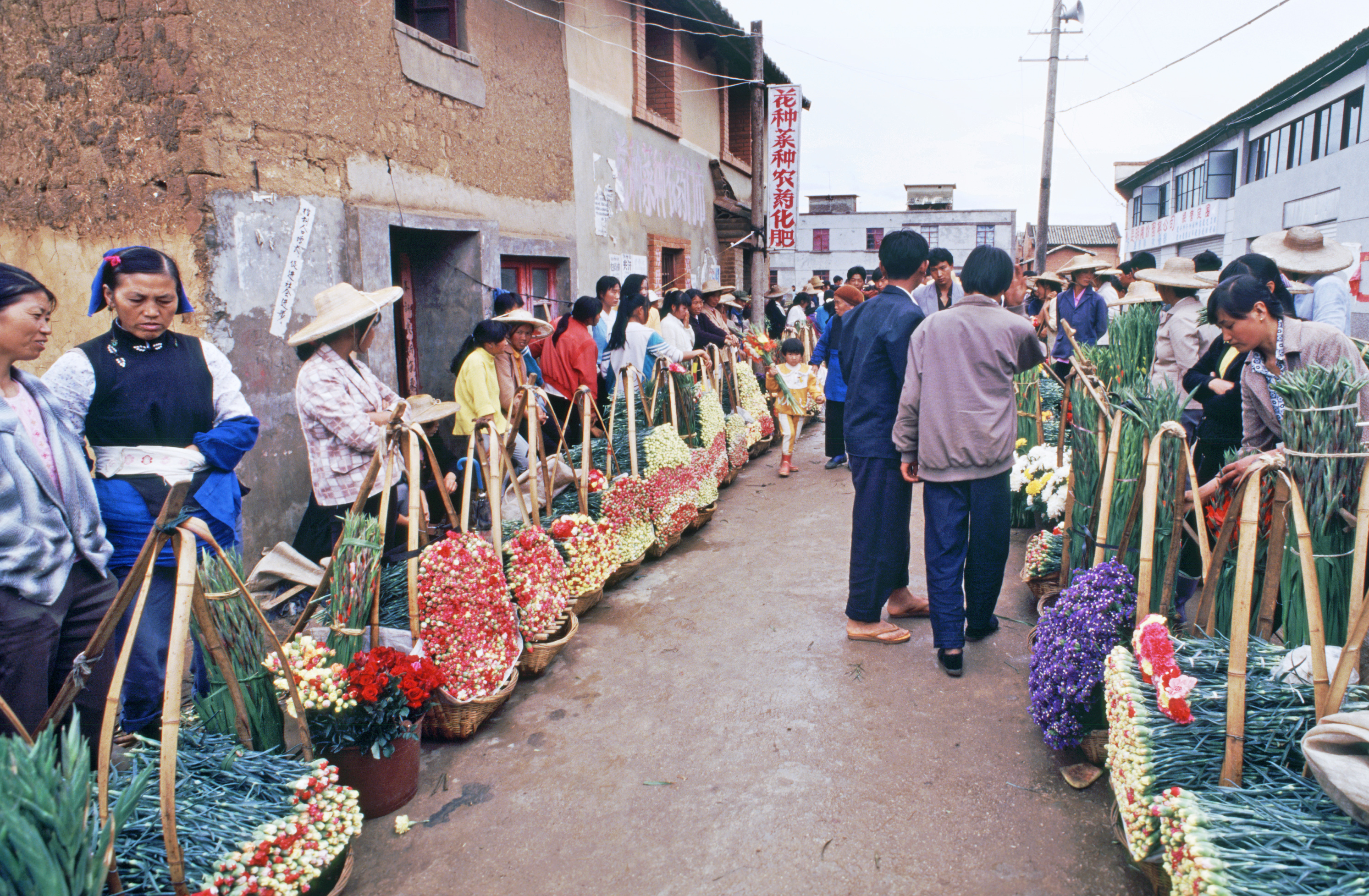 80年代的斗南是滇池畔一个种蔬菜的村子。1983年,时任呈贡县良种站站长的斗南人化忠义去广州出差,发现一枝鲜花能卖2毛钱。而当时,一公斤白菜的价格是5分钱。