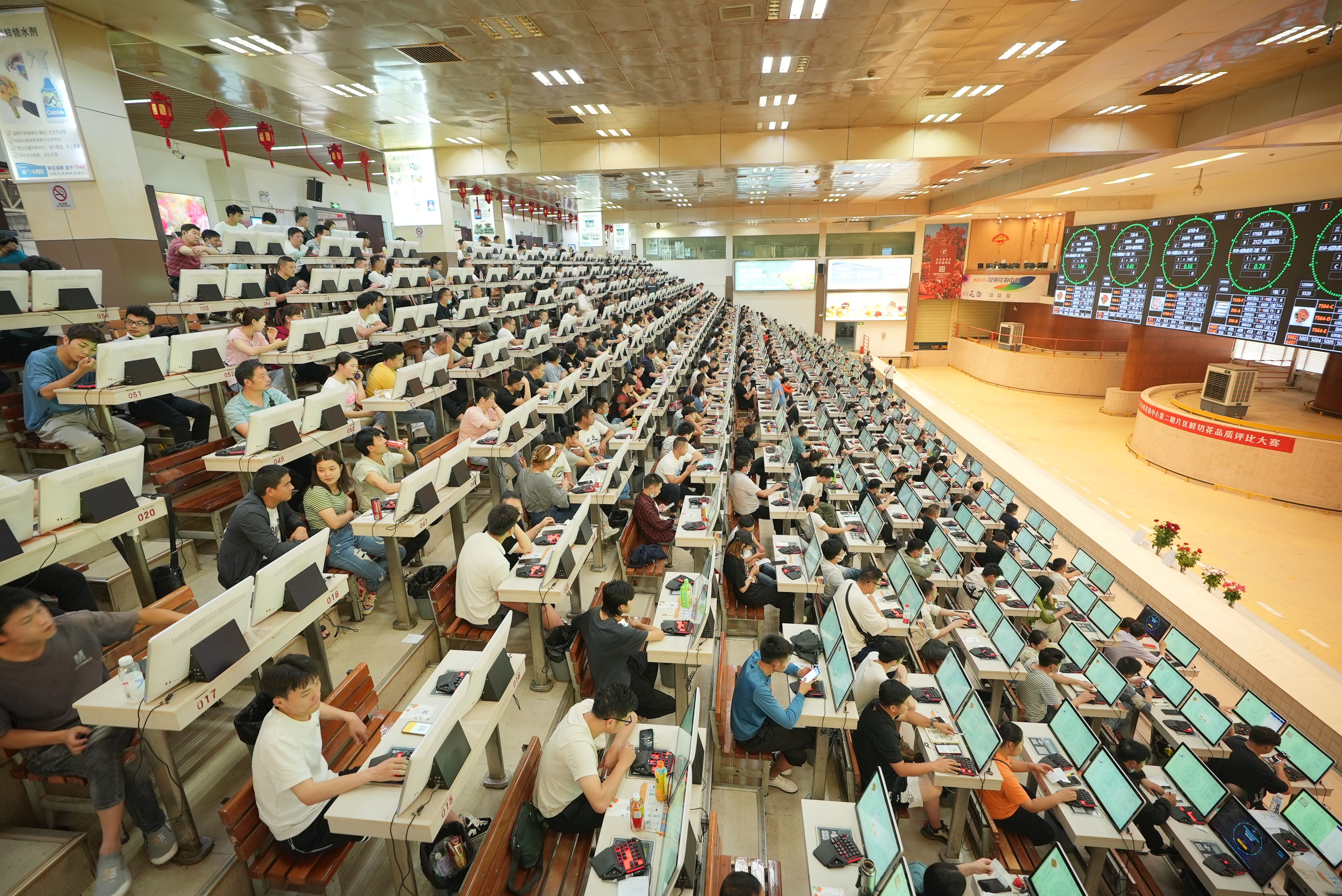拍卖开始,屏幕中央的电子交易钟从最高起拍价开始倒数。光标转圈、价格递减,第一个按下竞价按钮使光标停止的买家,即取得购买资格。随着拍卖进行,按键敲击声此起彼伏,花卉经纪人的脸上闪过各种表情:成功拍到的喜悦、失之交臂的懊恼……花拍中心采用的是“荷兰降价式拍卖”,平均完成一单交易的时间只有4秒。