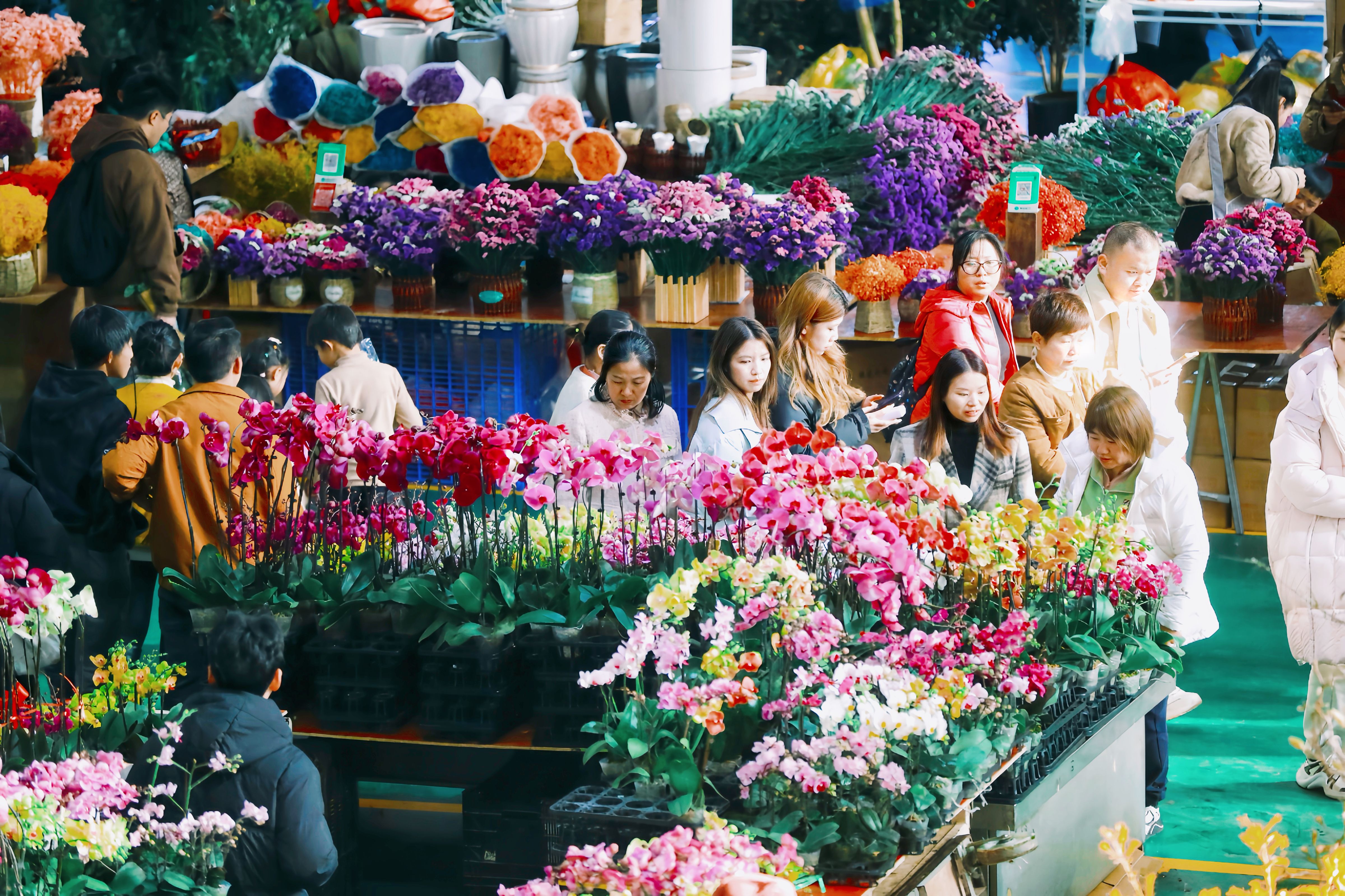 白天的斗南,游客和市民们挑选心仪的花卉装点生活;夜晚,批发交易火热进行,大型商户和物流公司纷纷入驻,大规模采购鲜花和配送。呈贡区斗南花卉产业综合服务中心主任郭照川介绍,这种独特的交易模式,不仅满足了不同时段的市场需求,也极大地提升了市场的活跃度和交易量。