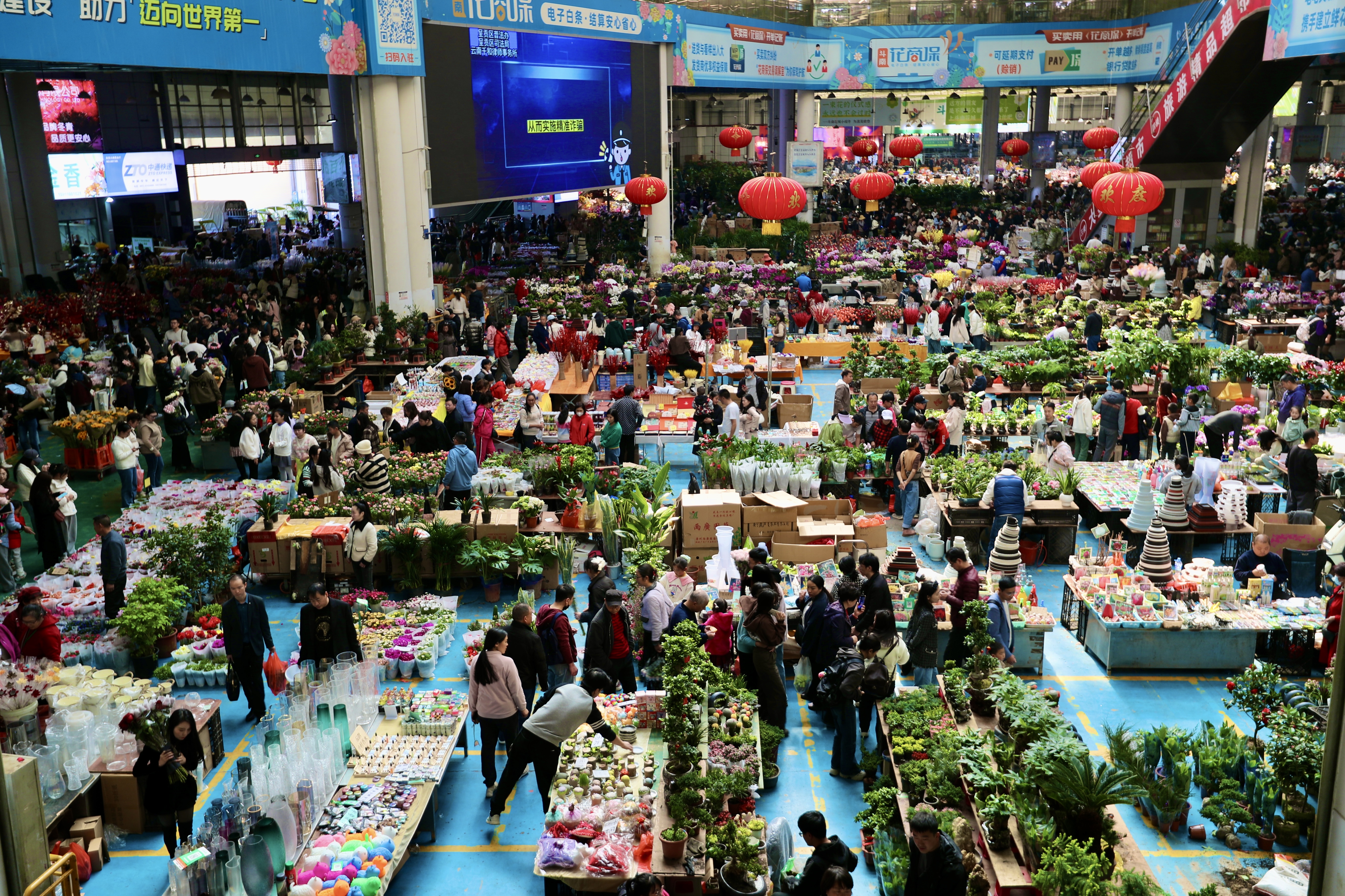 春节期间,斗南花卉市场人潮涌动。 刘洪斌摄