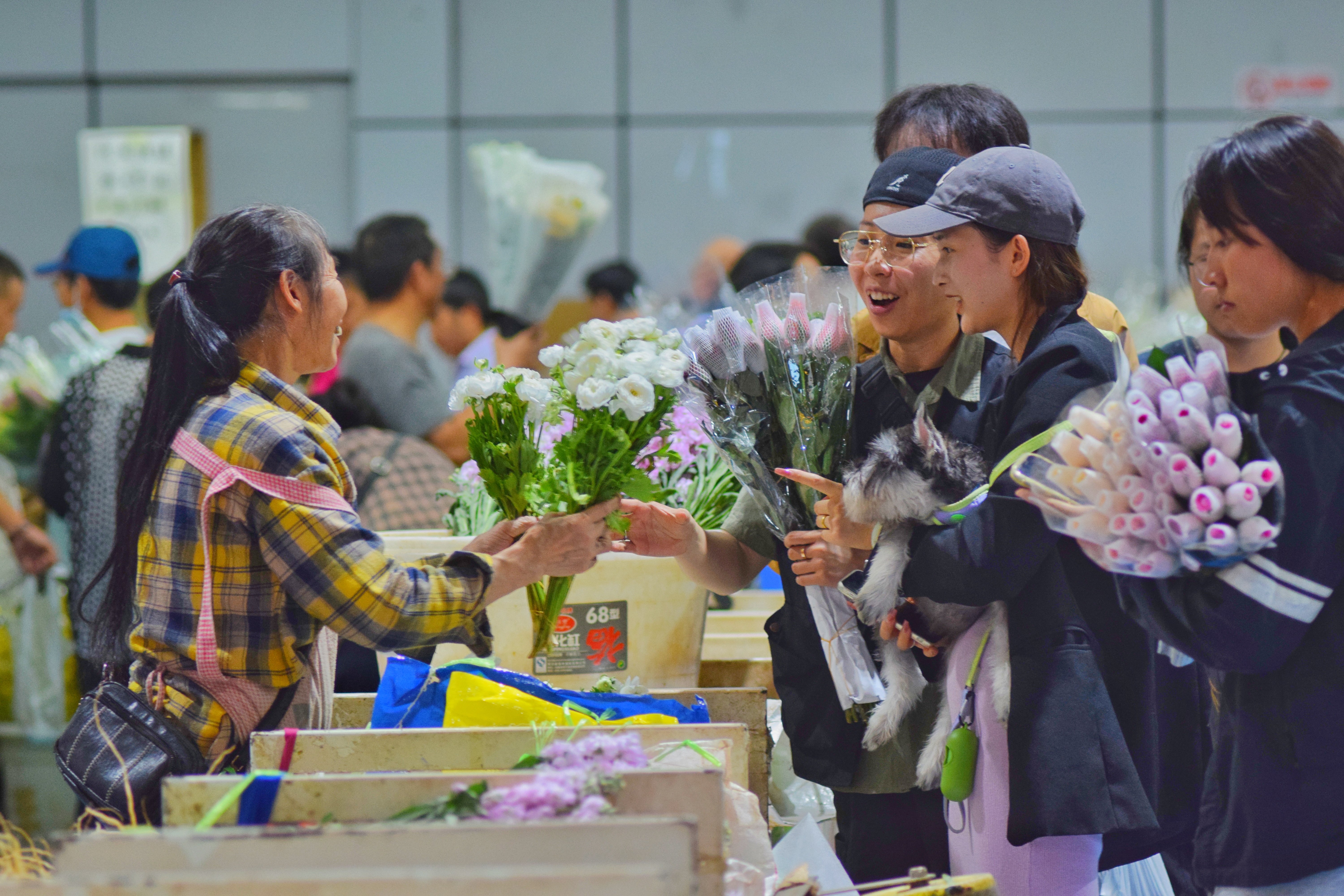 鲜花拍卖是专业采购商的领域,对于普通消费者而言,花市零售交易则是他们的“主场”。