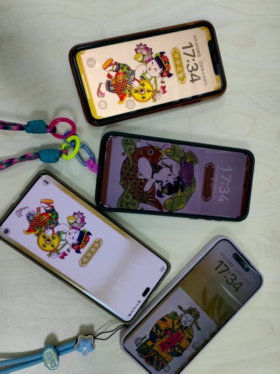 在技术转化环节,团队并未简单“复制粘贴”,而是结合现代审美与数字技术进行创新:用动态设计让年画中的“门神”眼神微动、“胖娃娃”手中的鲤鱼轻轻摆动,既保留传统韵味,又增添互动趣味;针对不同手机屏幕尺寸,优化画面构图,避免关键元素被裁剪;还推出“节气限定款”,如清明将年画中的“春牛图”与柳枝元素结合,中秋让“玉兔捣药”年画融入月亮渐变效果。
