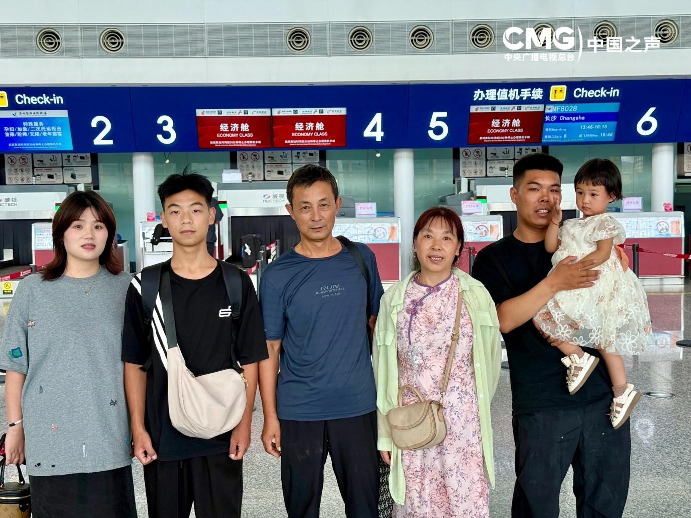△王佳皓启程前与家人合影(左起依次为姐姐、王佳皓、爸爸、妈妈、姐夫和外甥女)