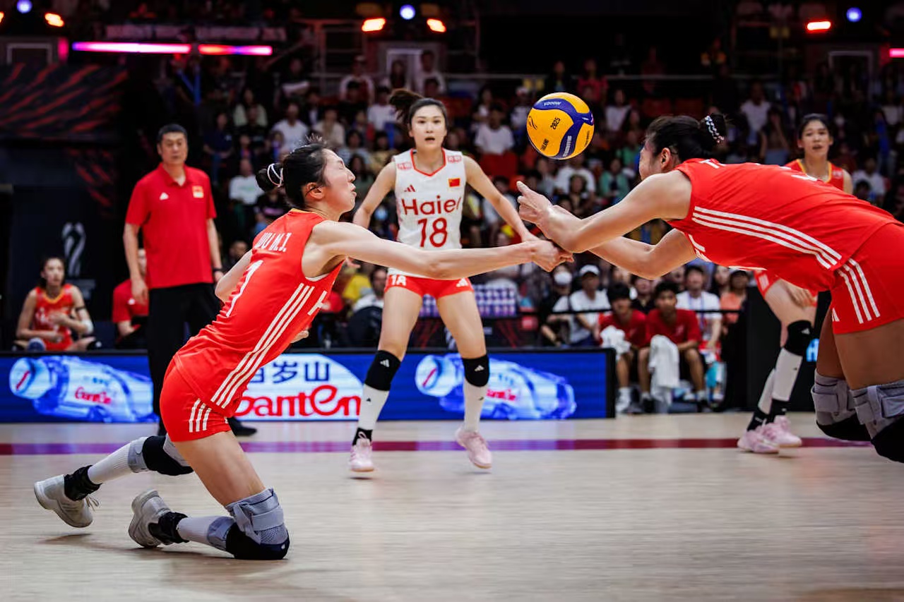 第三局,中国女排重整旗鼓,以19:13领先。尽管法国队随后竭力追赶,但中国姑娘稳住阵脚,以25:22扳回一局,大比分1:2。