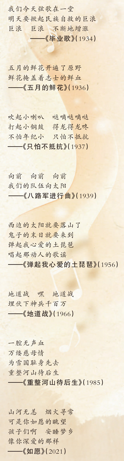 这些歌声,是刺向敌人的利刃。想想吧!“起来!不愿做奴隶的人们”一吼出来,多少沉睡的斗志立刻被唤醒,多少麻木的心脏瞬间被激发。田间老农扶着犁耙哼唱《大刀进行曲》,街头学子握着传单高歌《救亡进行曲》,晃着摇篮的母亲低吟“牺牲已到最后关头”,前线战士靠着战壕喊出“最后的胜利是我们的”……歌声钻过铁丝网,越过封锁线,在沦陷区的瓦砾堆里悄然生根。全民抗战的汪洋,正是由这些涓滴之声汇成。