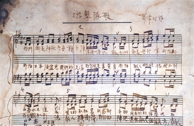 中共一大纪念馆藏《游击队歌》手稿(局部)。苗少坡摄