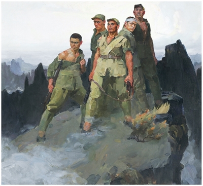 詹建俊油画《狼牙山五壮士》。