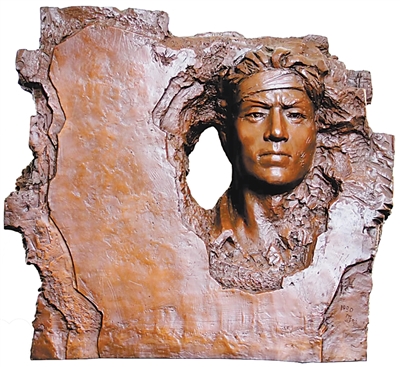 盛杨雕塑《无名英雄》,创作于2022年。作者经历过战乱并曾在部队工作,对革命精神有着深刻体悟。他坚持以刻刀雕琢时代精神,数十年来创作了不少革命题材作品。这件雕塑将人物头像与山石造型融为一体,以写实且具有纪念碑特质的风格礼赞无名英雄。