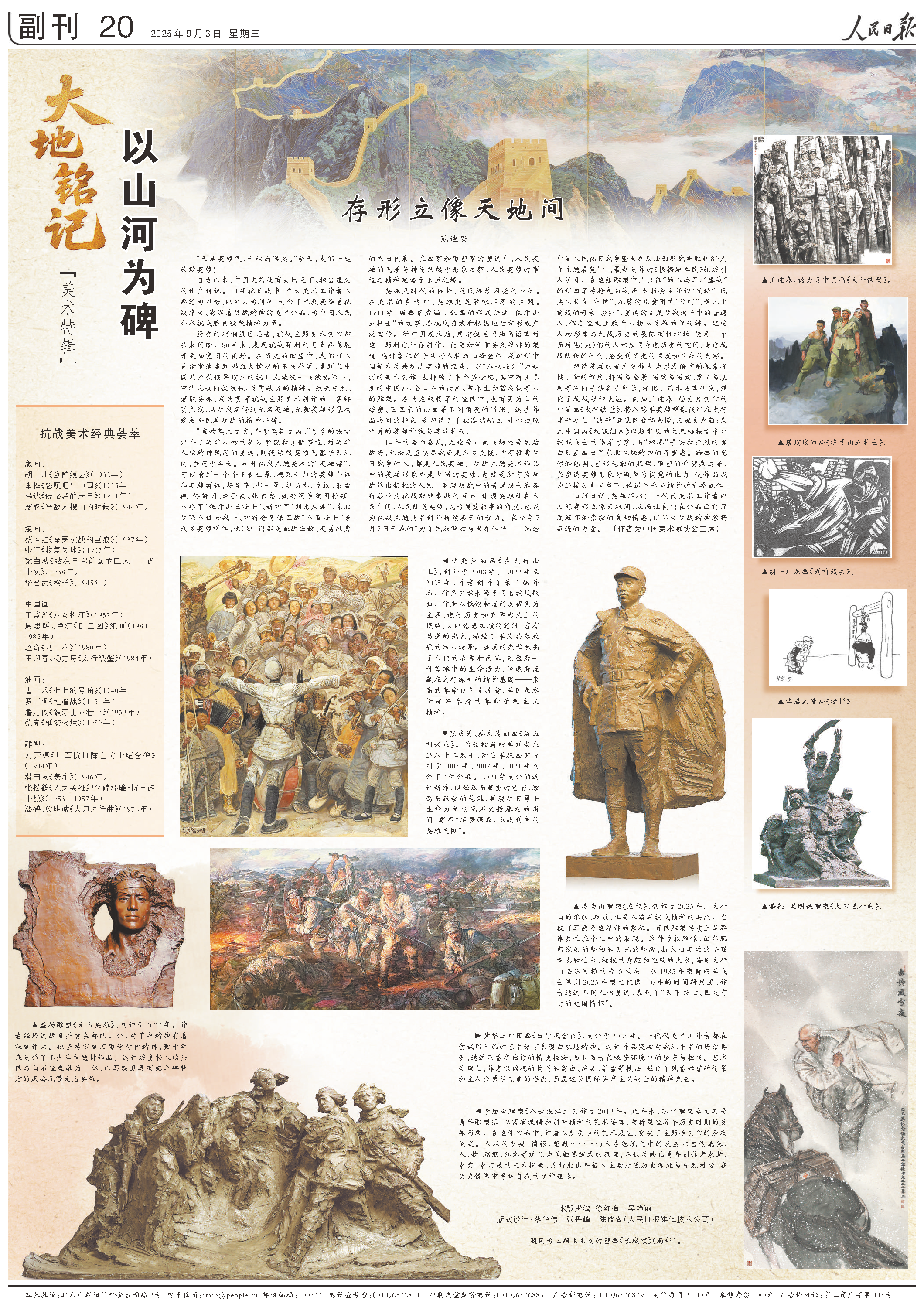 山河日新,英雄不朽!一代代美术工作者以刀笔存形立像天地间,从而让我们在作品面前涌发缅怀和崇敬的真切情感,以伟大抗战精神激扬奋进的力量。