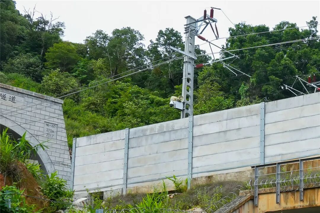 中老铁路开通以后,昆明局集团公司主动探索新思路,以创新科技构建周密防护体系,依托沿线声屏障、智慧安防视频系统、巡防人员岗亭等诸多措施,构筑起一道立体式、全时段的“护栏”,为中老铁路顺畅运营、象群悠然生活筑牢安全基石。