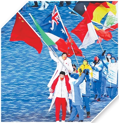 2022年2月20日,北京冬奥会闭幕式上,徐梦桃挥舞五星红旗入场。