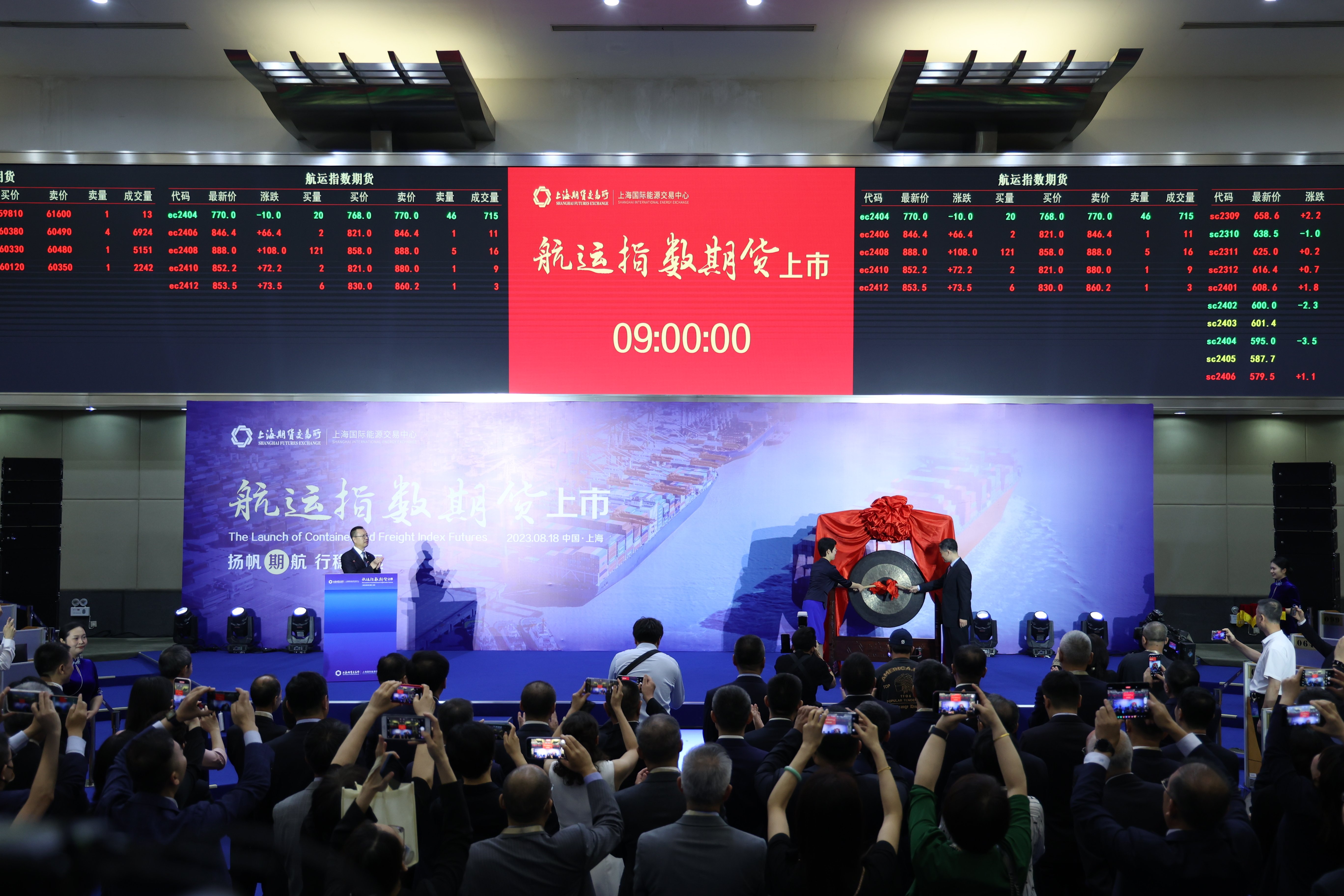 2023年8月18日。 集运指数(欧线)期货在上海期货交易所全资子公司上海国际能源交易中心上市。上期所供图