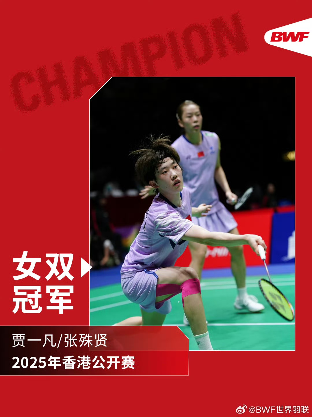 贾一凡/张殊贤夺得中国香港羽毛球公开赛女双冠军