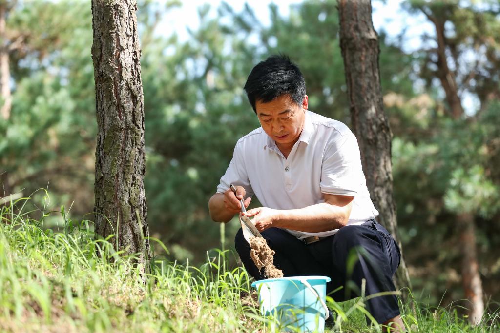 梁春荣在树林中寻找适合入药的硅砂。新华社记者 龙雷 摄