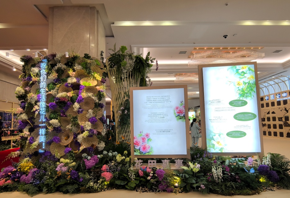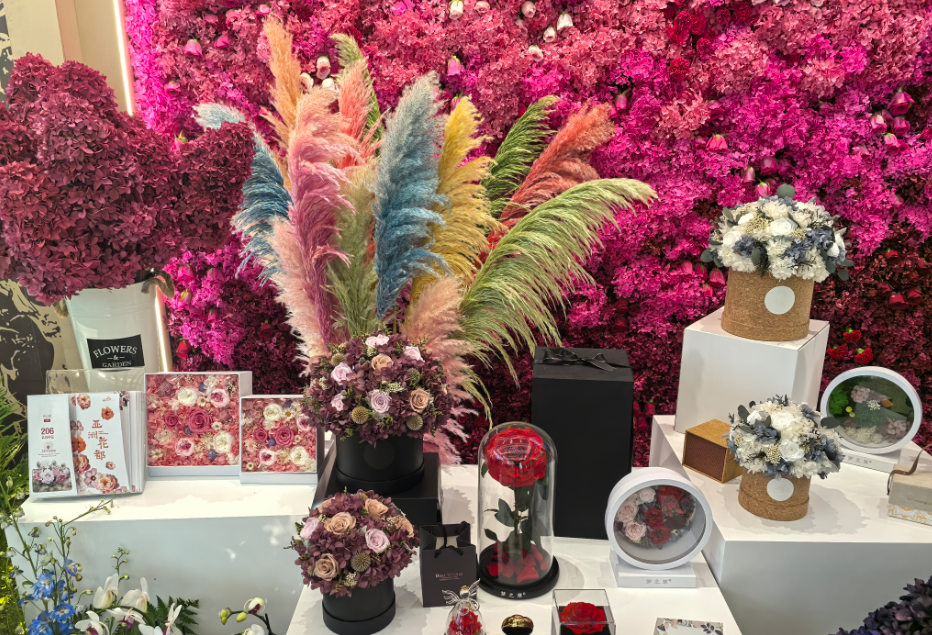 走进云花展区,各种鲜花搭建而成的精美装置造型引人关注,并飘出阵阵花香。现场展示了玫瑰、洋桔梗、绣球、百合、非洲菊、铁线莲等多种鲜切花,以及部分永生花产品,让人仿佛置身于花的海洋。