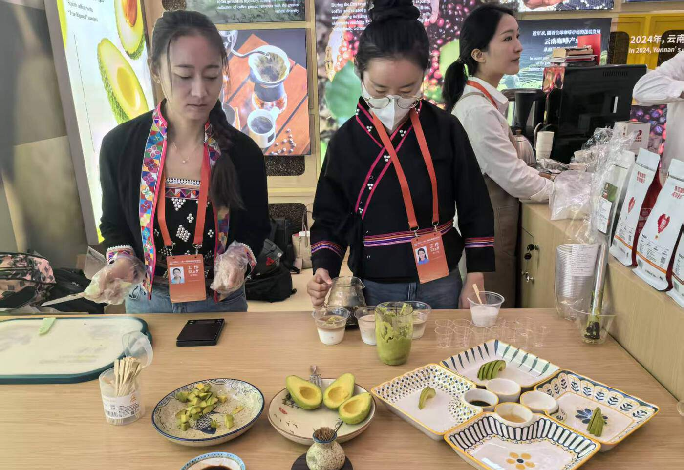 临沧坚果、澄江蓝莓、孟连牛油果及相关产品,依次摆放在云果区域,工作人员现场为大家开坚果、切牛油果、制作牛油果咖啡,再来几颗酸甜可口的蓝莓,让人大饱口福。间隙,不断有人问着购买方式,云果的品质和味道得到了充分认可。