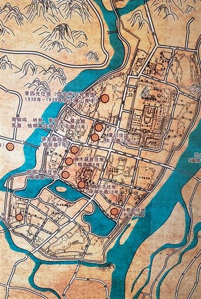 抗战时期部分文化名人在桂林居住分布图。本报记者郑娜摄