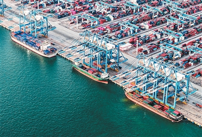 9月4日,海轮停靠钦州港集装箱自动化码头装卸集装箱。新华社记者 张爱林摄
