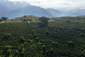 大巴车转过最后一个弯道,眼前豁然开朗——背靠云雾缭绕的高黎贡山,面向壮阔奔涌的怒江,有70多年咖啡种植历史、种植面积超万亩的新寨村坐落于此。