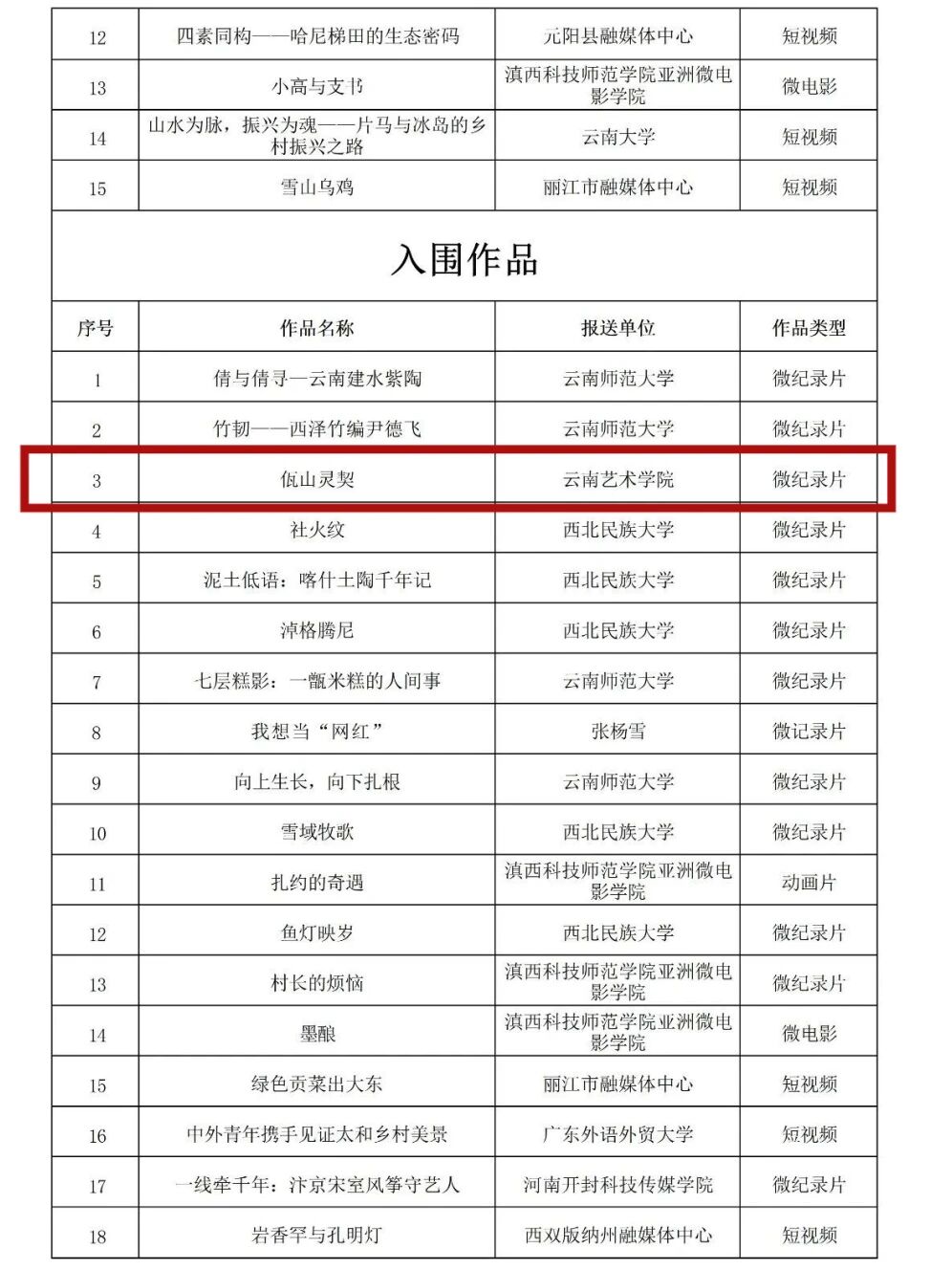 云南艺术学院七部作品在全国乡村文化振兴题材短视频作品征集活动中获奖