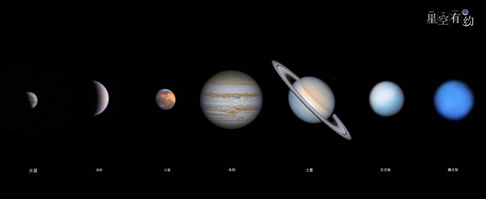 除地球外,太阳系另外七大行星的“合影(拼版)”。(汉玲 摄)