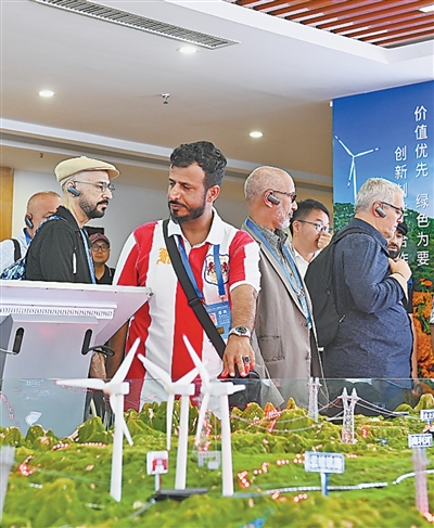 9月20日,云南丘北县,外媒记者在大唐云南发电有限公司滇东新能源事业部听取国内规模最大高原山地百万千瓦风电基地介绍。 |