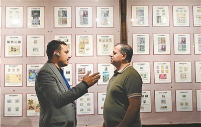 9月18日,在云南昆明市晋宁博物馆的“郑和·世界航海邮票展厅”,外媒记者在进行交流。 |