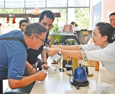 9月18日,在云南保山市比顿高黎贡精品咖啡文化园,外媒记者参观咖啡博物馆。 |