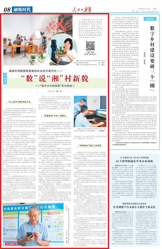电商直播,开启“云上卖花”新模式;智慧渔政,精准打击非法捕捞;村务积分,全员参与可感可及……潇湘大地上,数字技术正广泛激活乡村发展新动能,成果遍及智慧产业、平安乡村、基层治理等多个领域。湖南省如何因地制宜建设数字乡村?记者进行了采访。