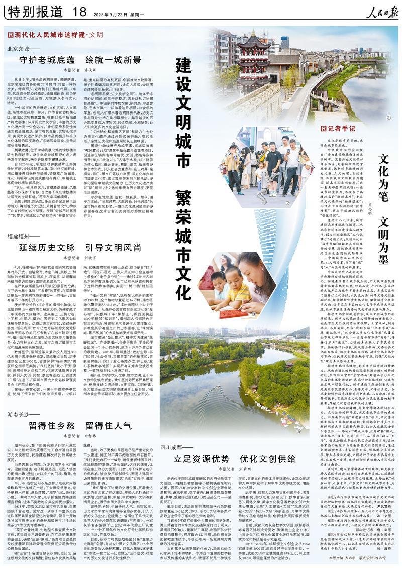 本报记者近日走进多个城市,探访各地认真践行人民城市理念,大力推动城市结构优化、动能转换、品质提升、绿色转型、文脉赓续、治理增效的生动实践,9月17日—22日连续推出“现代化人民城市这样建”6块整版专题报道,带您感受城市高质量发展取得的新进展、新成效。