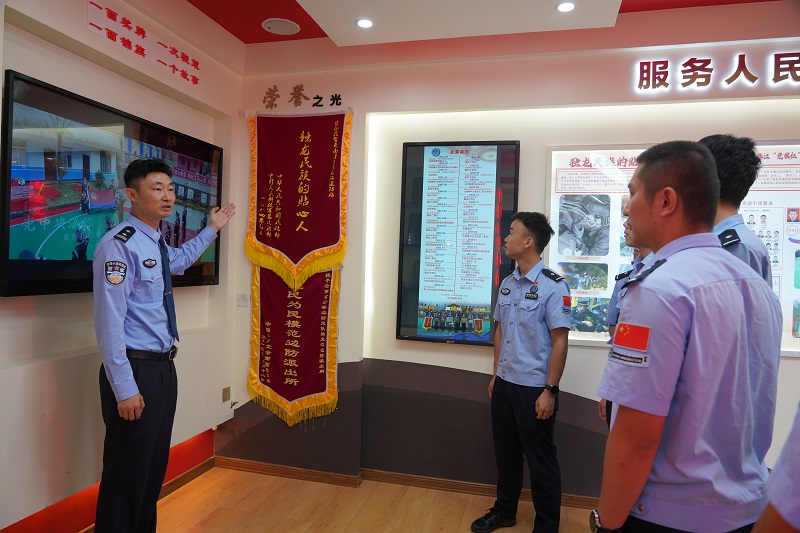 在副所长李骏的带领下,新警们沿着派出所的工作轨迹,先后走进荣誉室、融媒体工作站与便民服务中心等场所,实地了解该所在政治建警、基层基础、强边固防、服务群众等方面的工作成效。