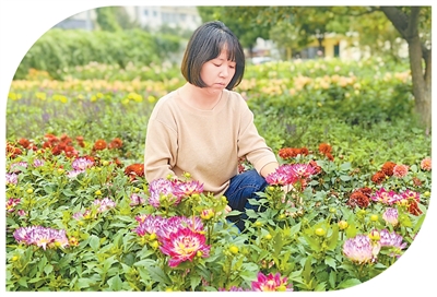包头市园林科研所的花圃中,吴晓静在查看小丽花生长状况。 |