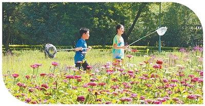 包头市阿尔丁植物园,小朋友们在小丽花丛中玩耍。 |