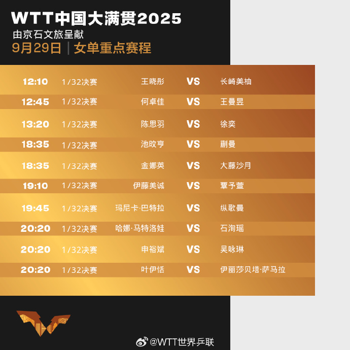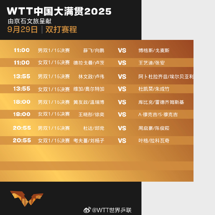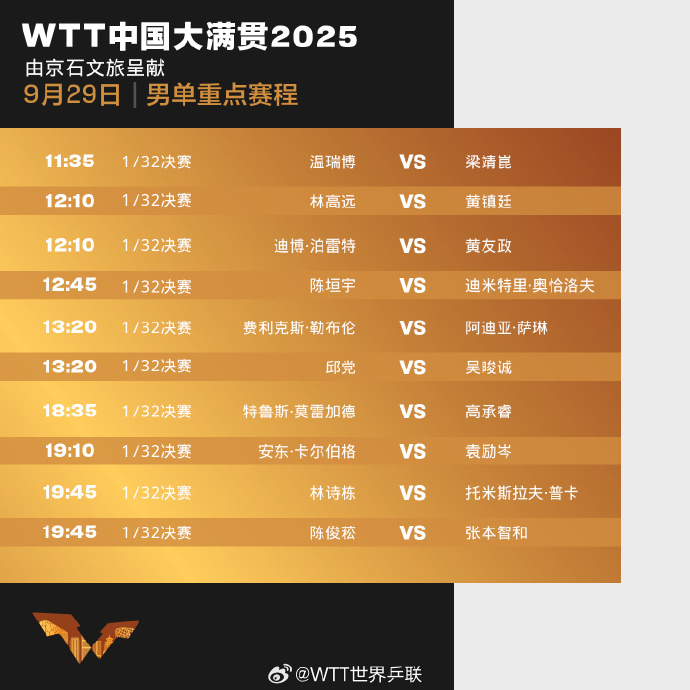 WTT世界乒联微博2025-09-29 06:59