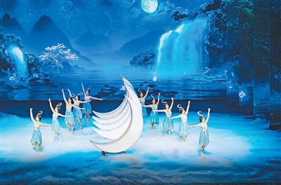 江西宜春明月山“明月千古情”景区上演嫦娥奔月。 |