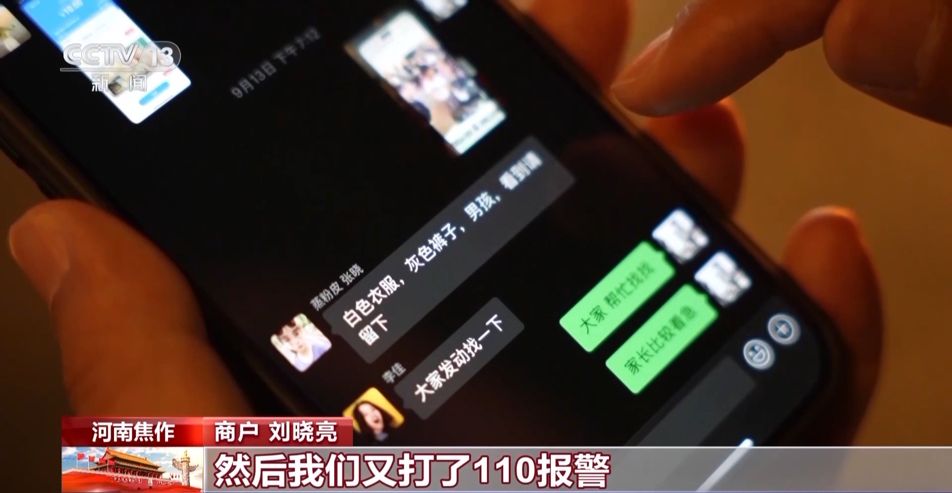 商户 刘晓亮:当时我和同事正在茶馆沟通拍摄宣传的事,发现这个家长找不着小孩了,我俩一块就马不停蹄第一时间往这赶。到这的时候,家长其实已经有点失态了,已经慌了。