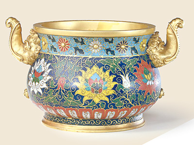 掐丝珐琅缠枝莲纹象耳炉。