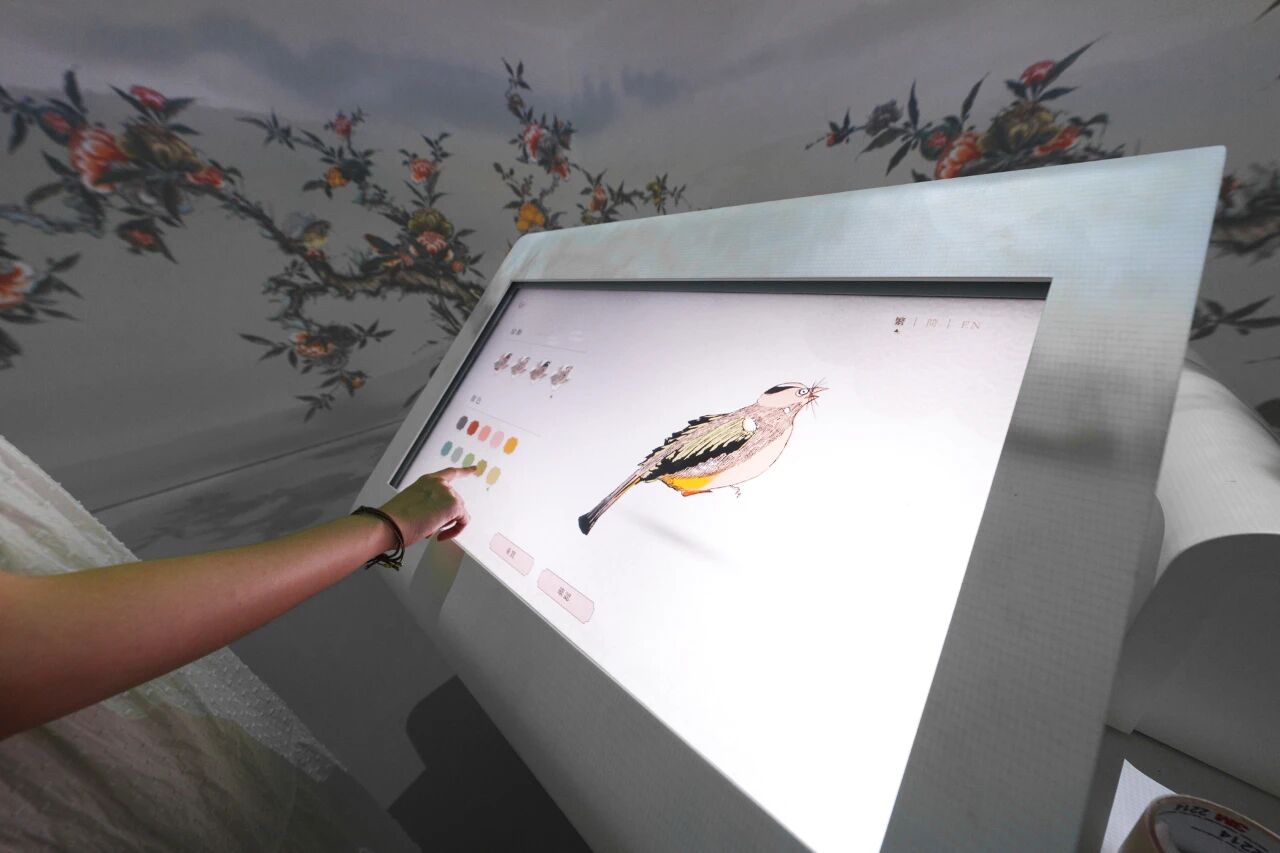 “故宫博物院沉浸式数字体验展”上,观众在创作纹样。