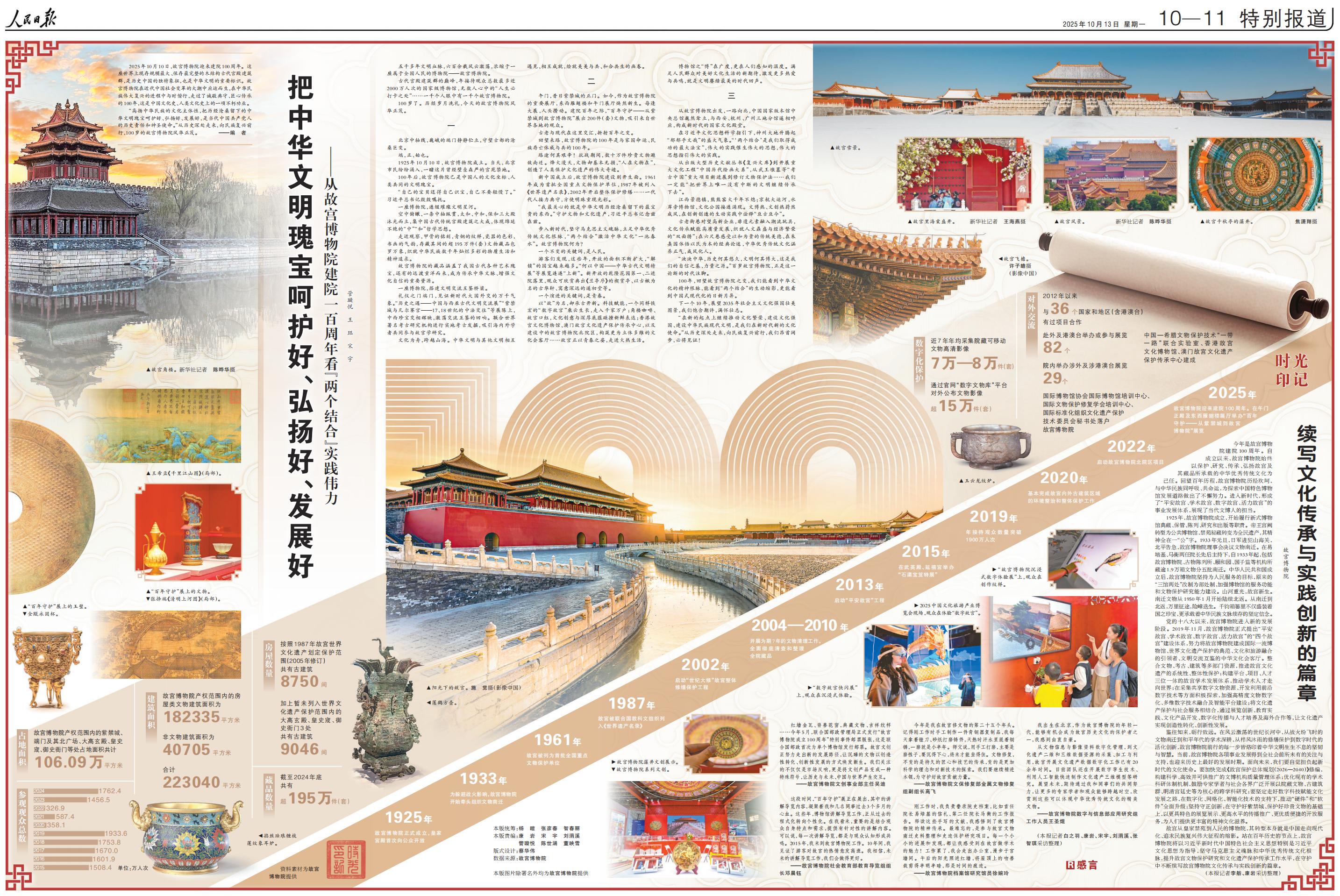 “高扬中华民族的文化主体性,把历经沧桑留下的中华文明瑰宝呵护好、弘扬好、发展好,是当代中国共产党人的历史责任和神圣使命。”从历史深处走来,向民族复兴前行,100岁的故宫博物院风华正茂。