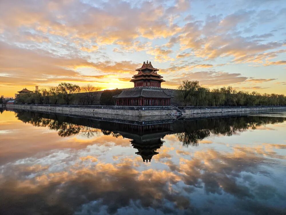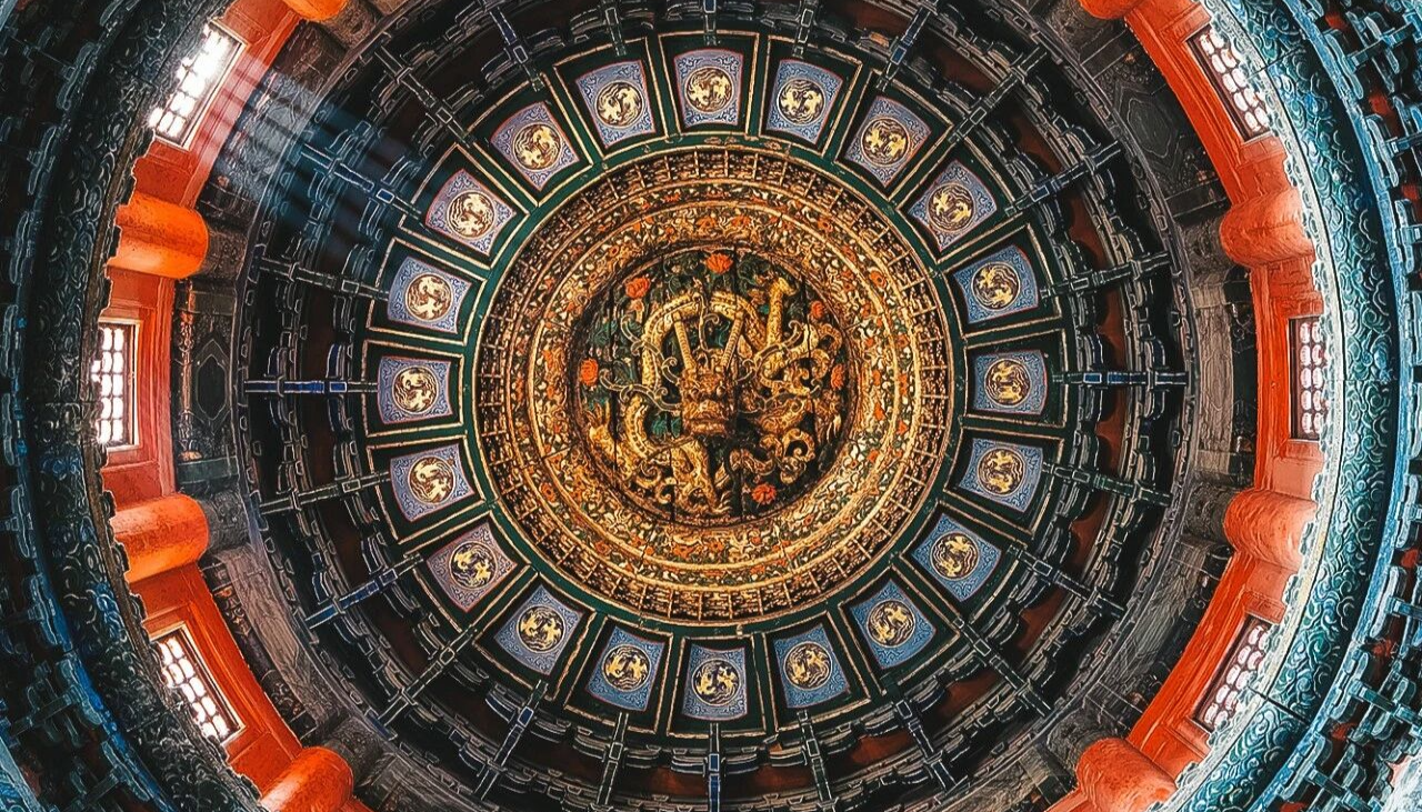 空中俯瞰,一条中轴纵贯,太和、中和、保和三大殿沐光而立,集中国古代传统宫殿建筑之大成,体现绵延不绝的“中”“和”哲学思想。