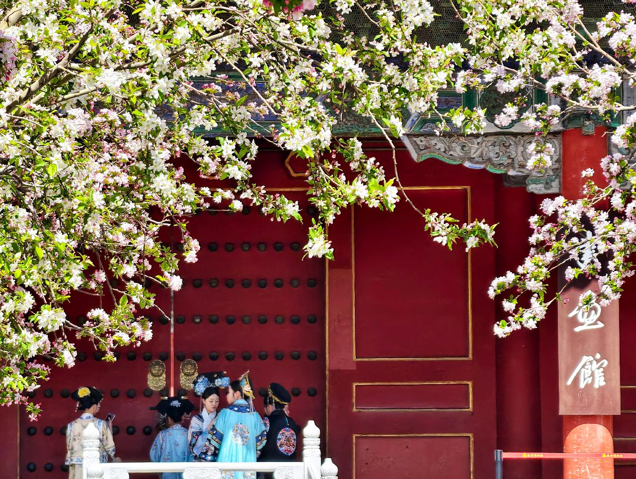 故宫里海棠盛开。新华社记者 王海燕 摄